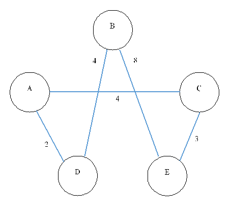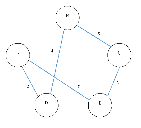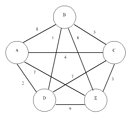 Diasumsikan ada 5 titik yang harus dihubungkan semuanya, yaitu titik A,B,C,D,E