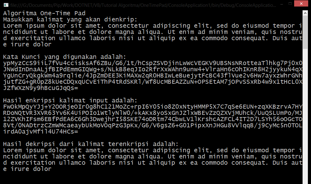 * Skrip tersebut akan menjalankan proses enkripsi yang terdapat dalam Class OneTimePad.