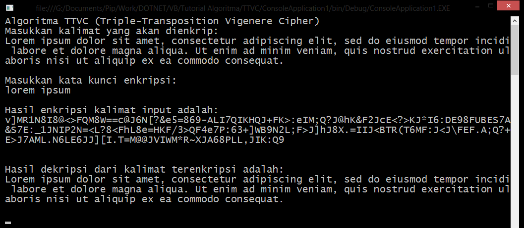 Dim hasilEnkripsi As String = ttvc.enkripsi(input, kataKunci)