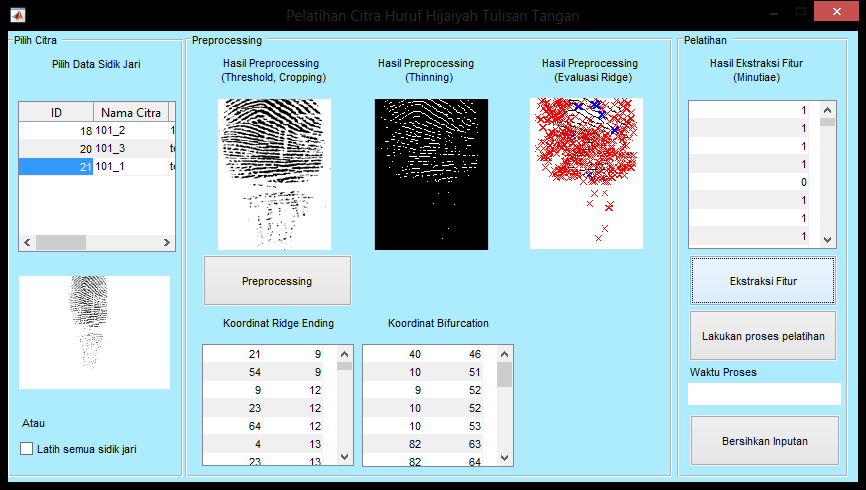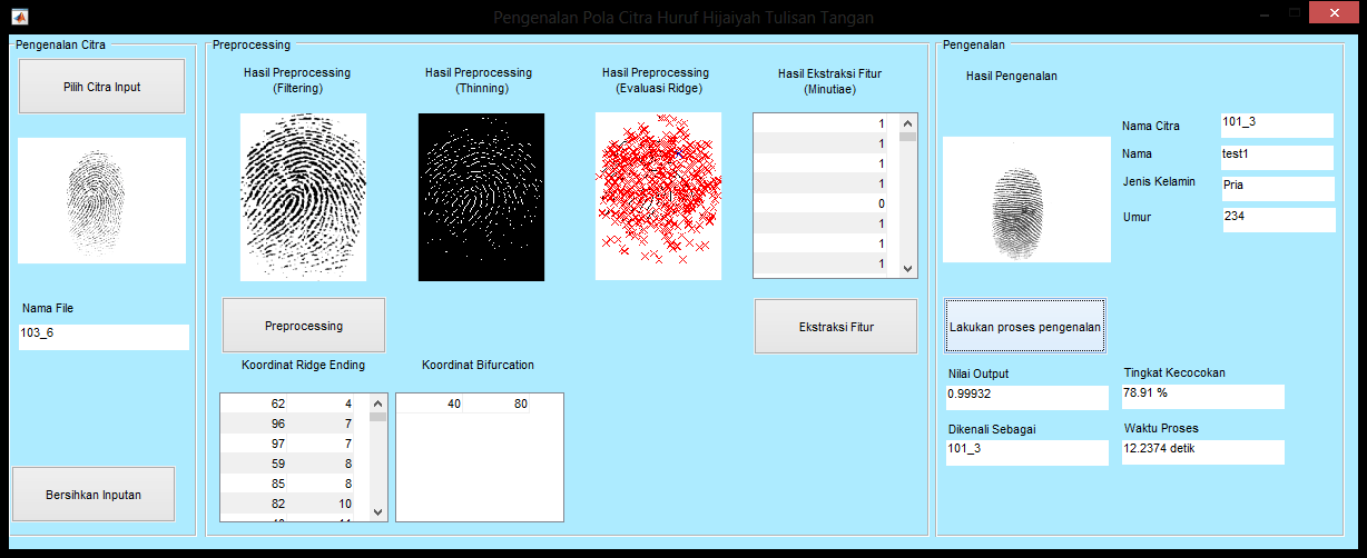 | Metode Tambahan | Minutiae Feature Extraction dan Back-Propagation |
