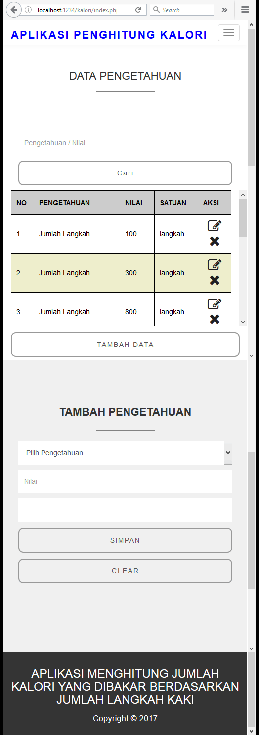 | Database | XAMPP 5.6.11 (bisa dicoba menggunakan versi yang lebih rendah) |