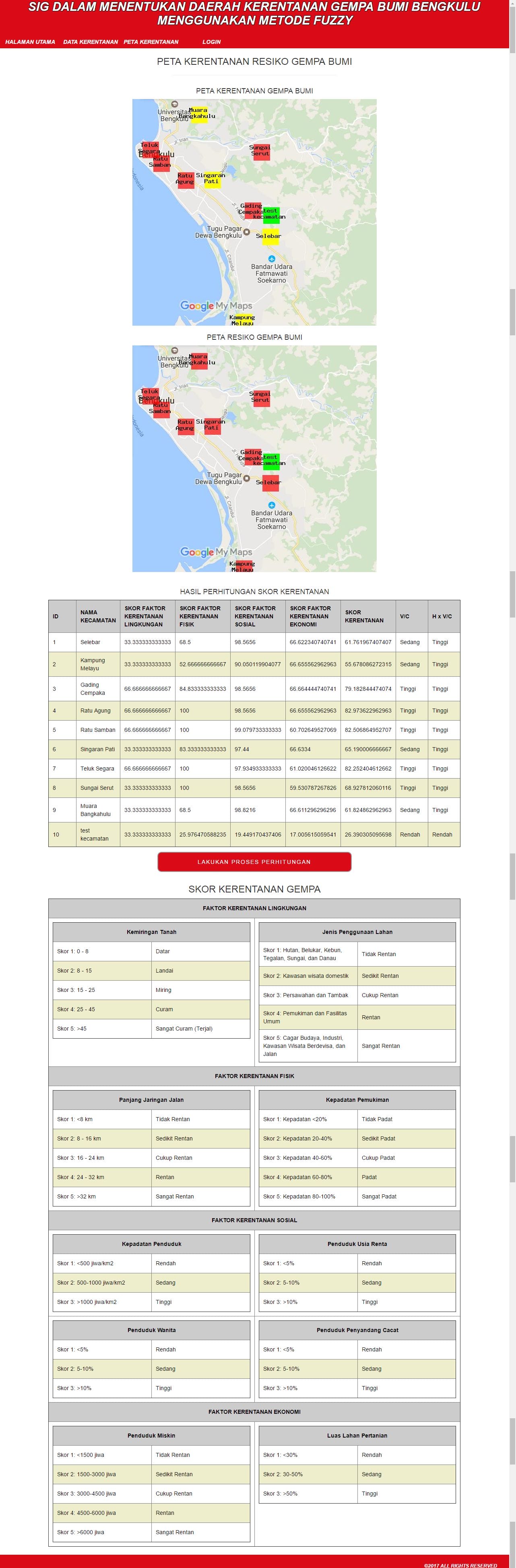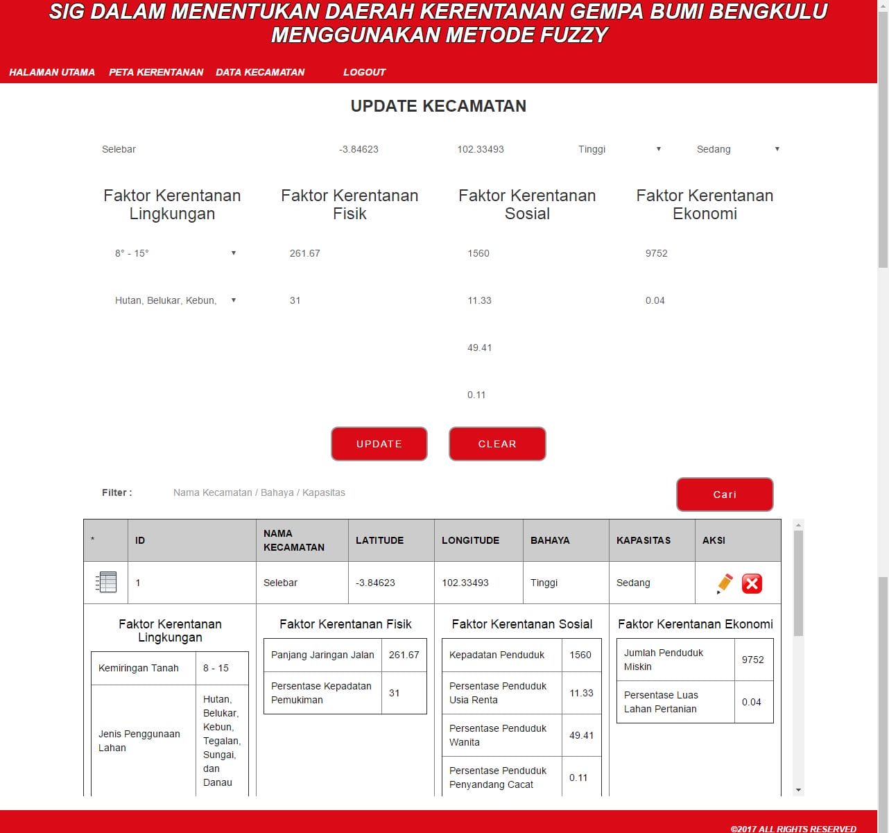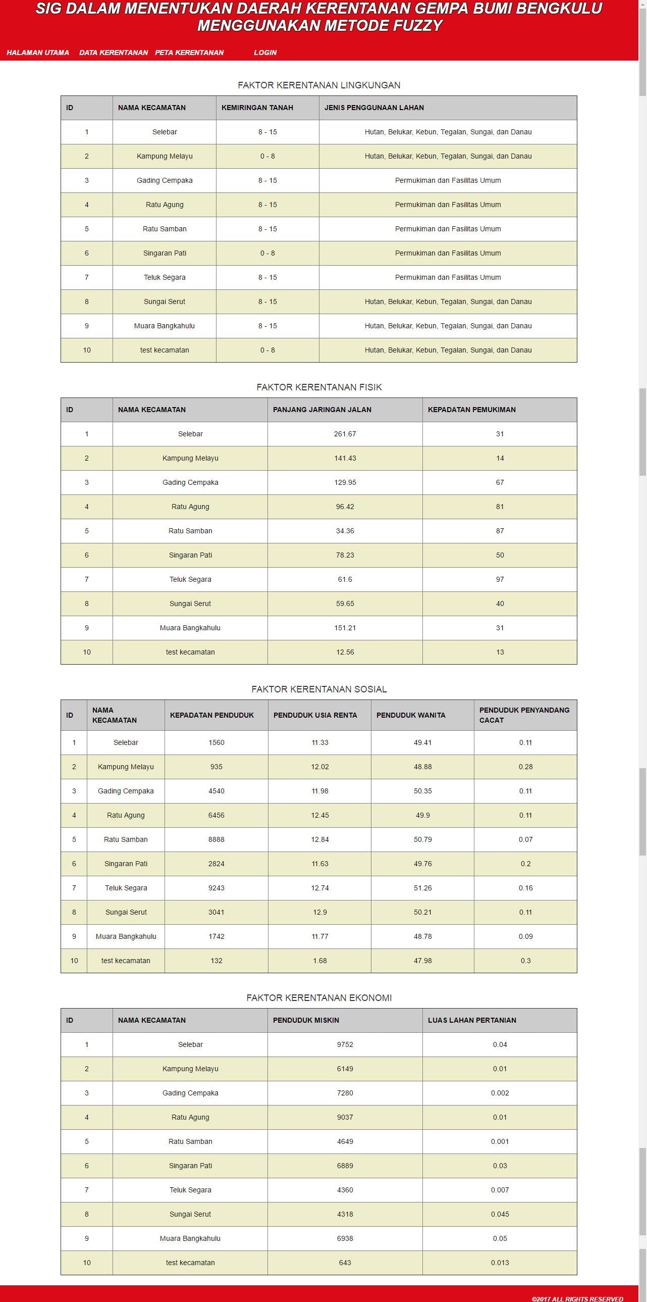 Fungsi utama aplikasi ini adalah untuk menentukan daerah mana saja yang mengalami kerentanan terhadap gampa bumi. Ada 4 kriteria yang diperhitungkan, yaitu :