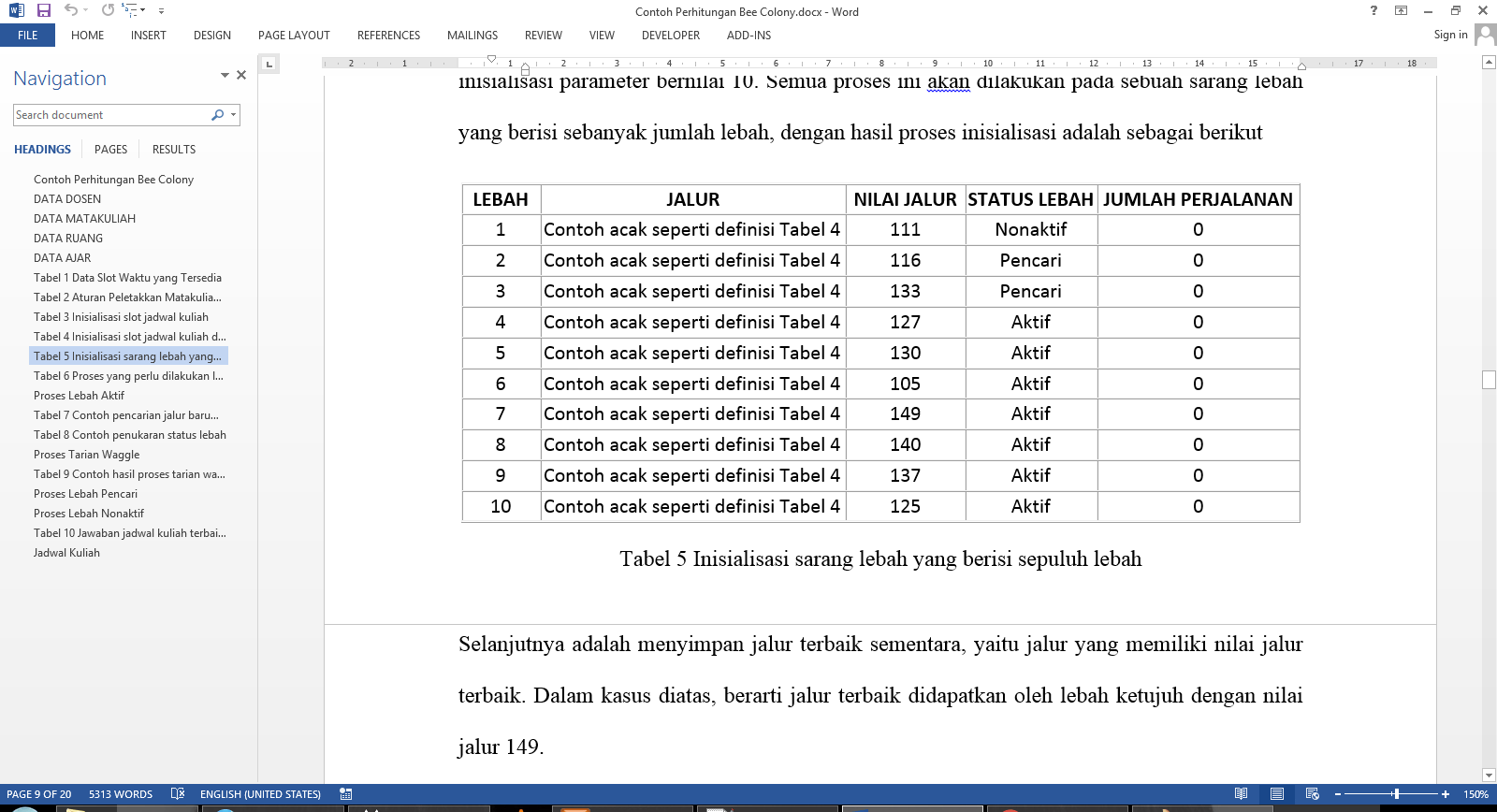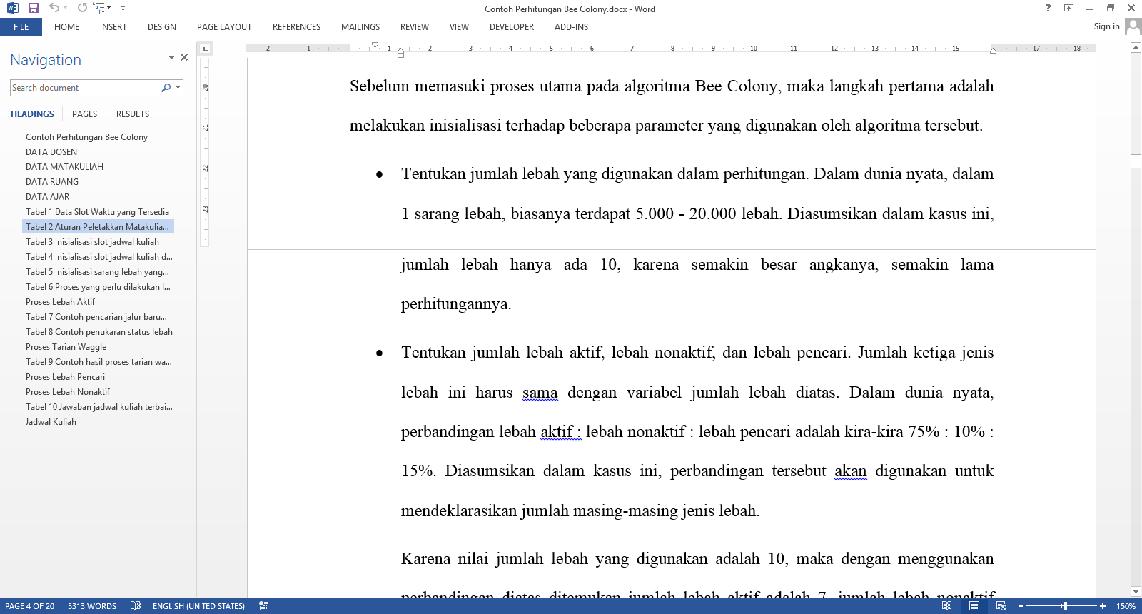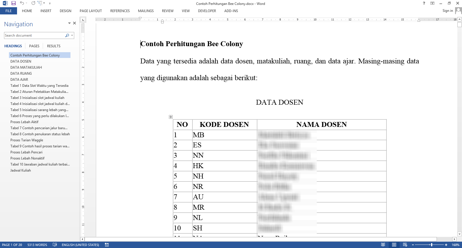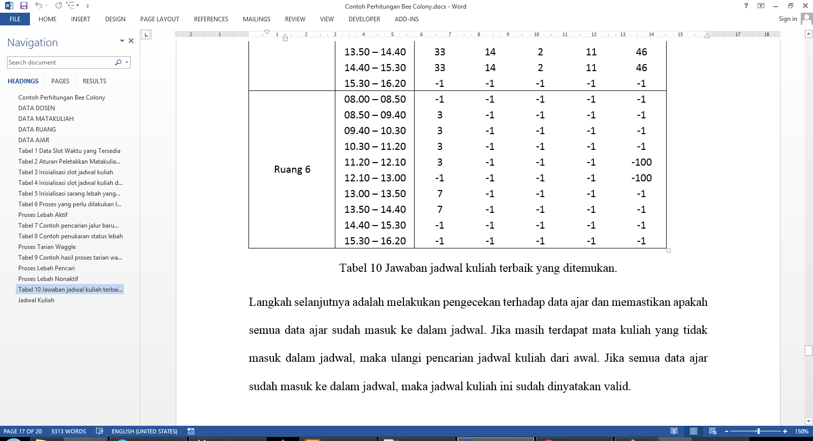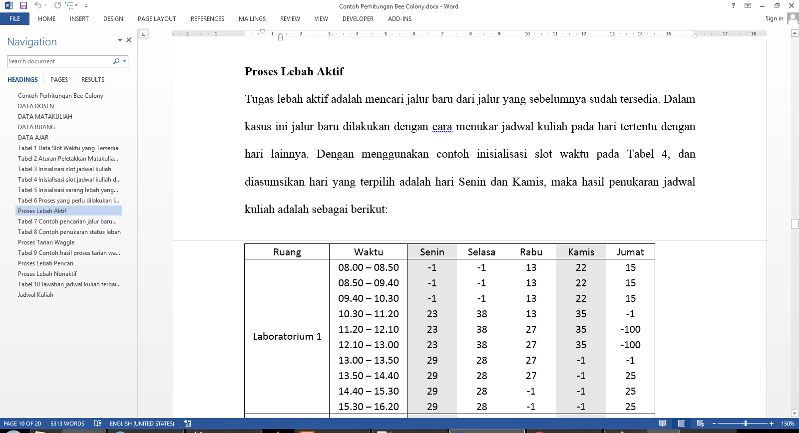 | Ada sejumlah inputan data mata kuliah, dosen, ruangan, hari, waktu, dan tabel ajar yang tersedia. Data-data ini kemudian akan diproses untuk memperoleh jadwal kuliah yang paling baik. Jadwal kuliah yang tersedia memiliki batasan bahwa pada hari dan jam yang sama, tidak boleh ada matakuliah, dosen, dan ruang yang berada pada saat bersamaan. Metode yang digunakan adalah metode BCO (Bee Colony Optimization). Tutorial metode ini dapat dilihat pada link diatas. | |