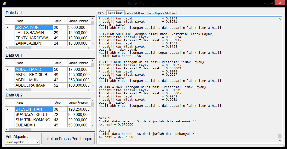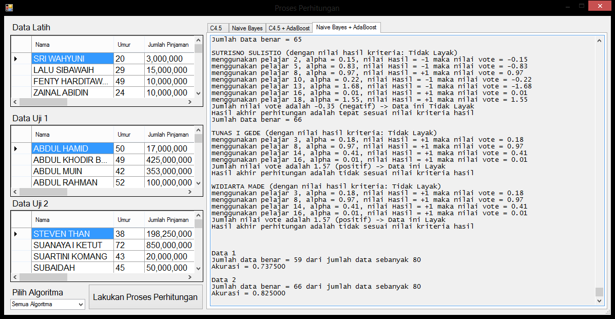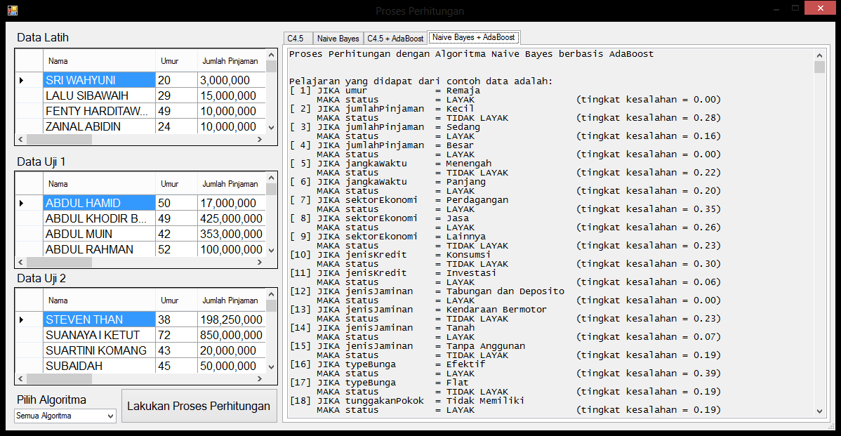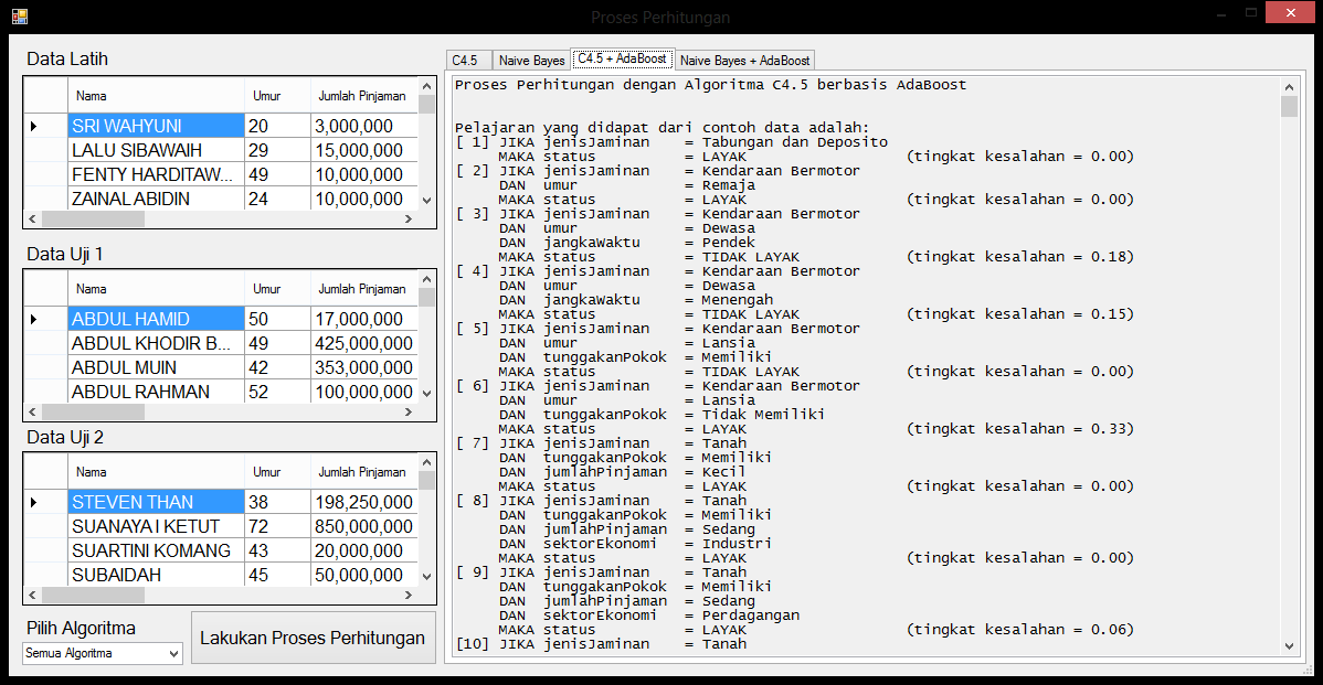 | Metode Tambahan | C4.5, Naive Bayes, AdaBoost (Adaptive Boosting) |