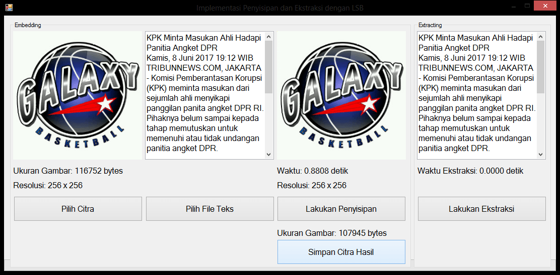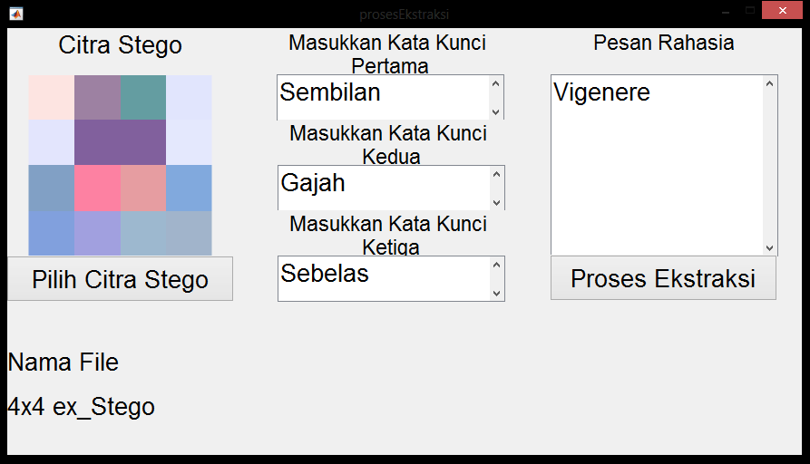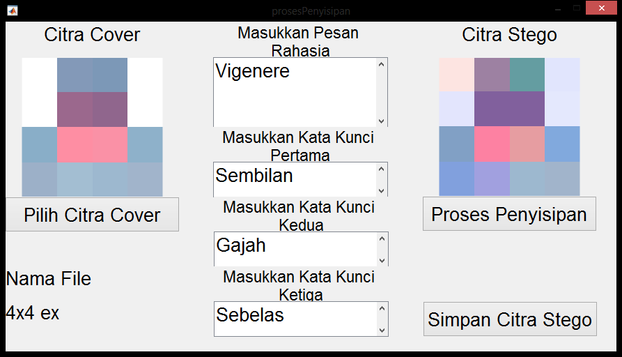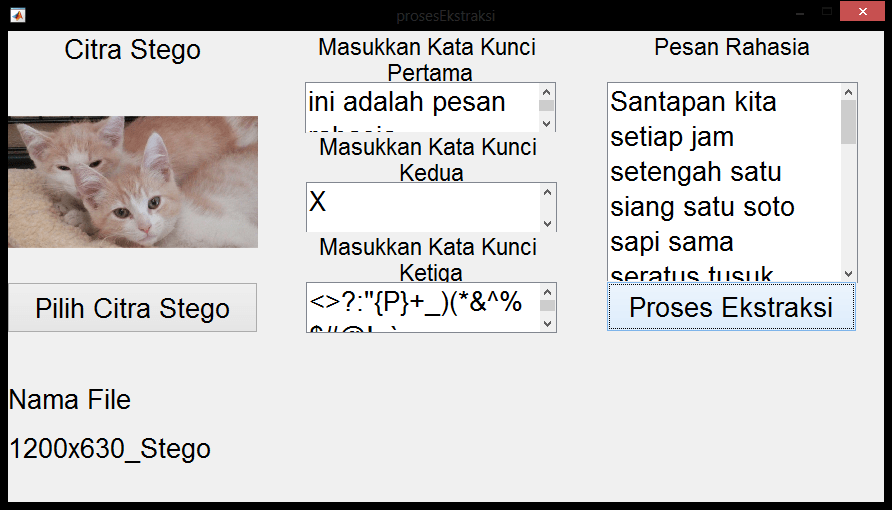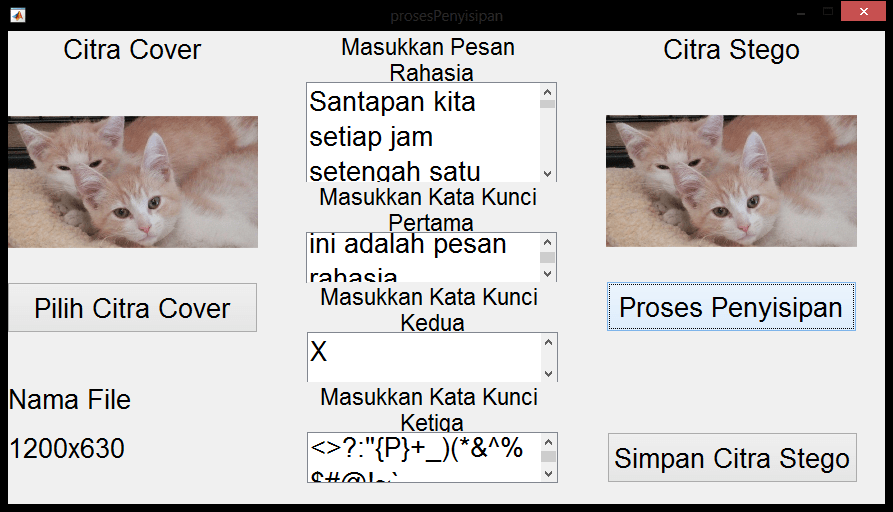 | Metode Tambahan | MLSB (Modified Least Significant Bit) dan TTVC (Triple Transposition Vigenere Cipher) |