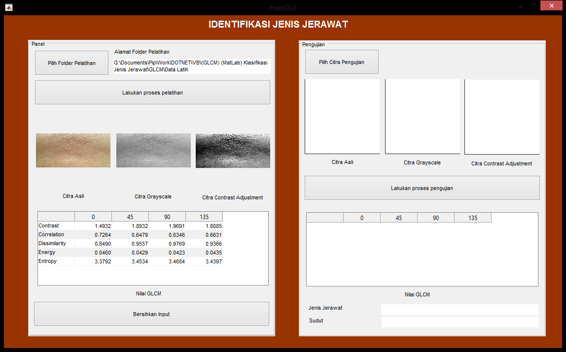 | Metode Tambahan | GLCM (Gray-Level Co-occurence Matrix) |