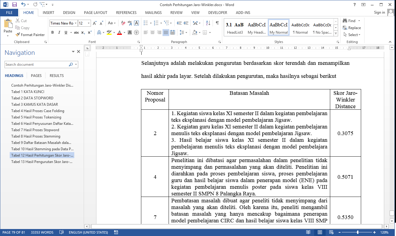 | Metode Tambahan | Stemming Arifin dan Jaro-Winkler Distance |