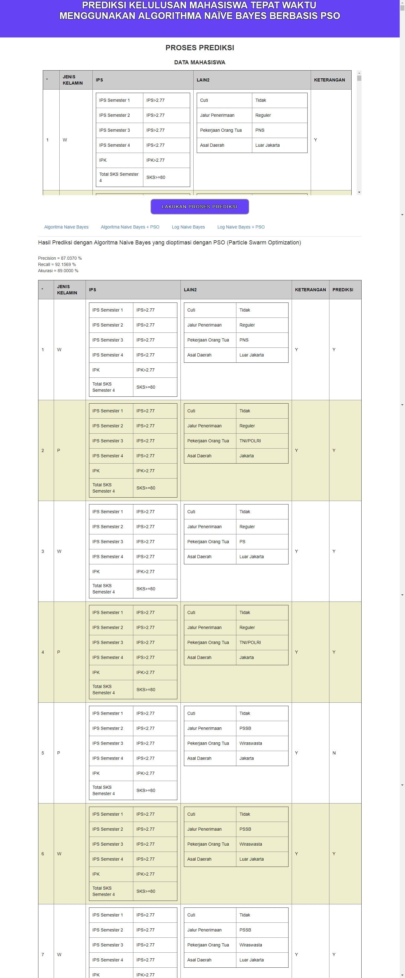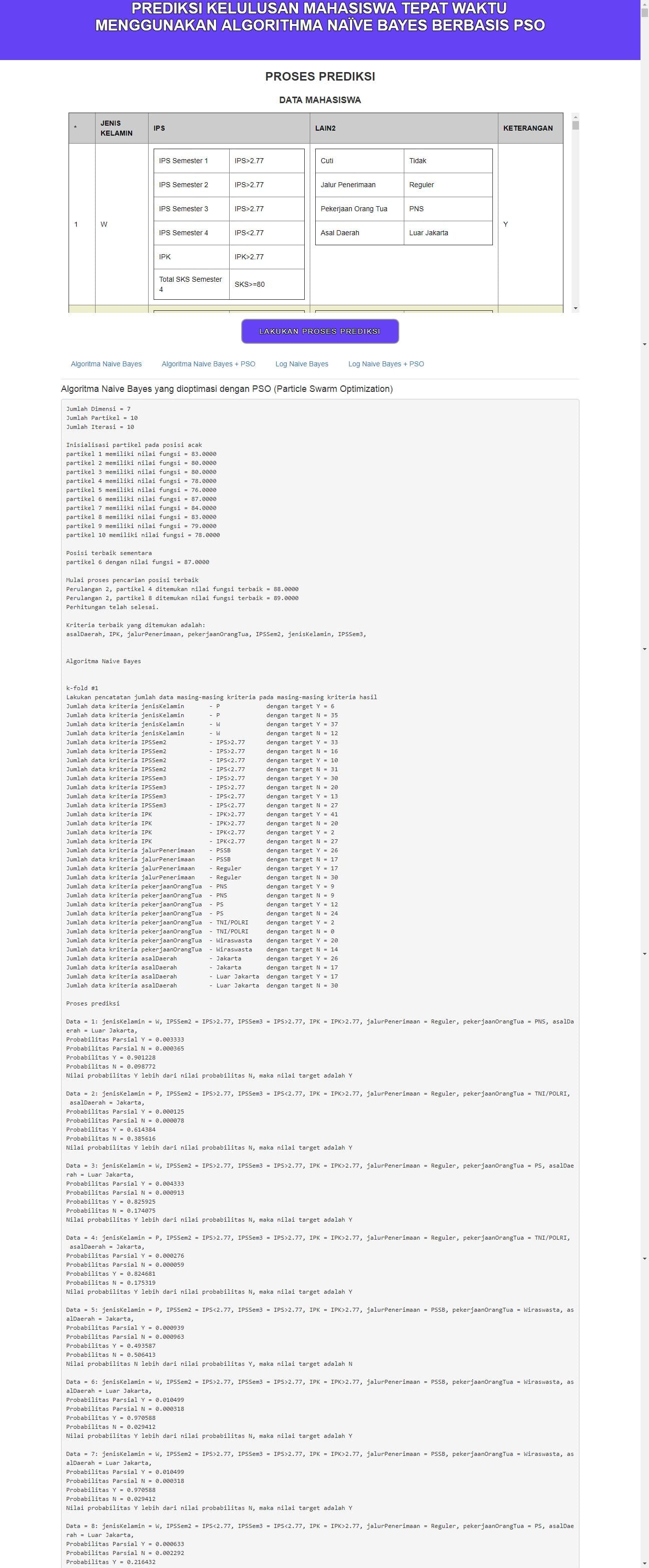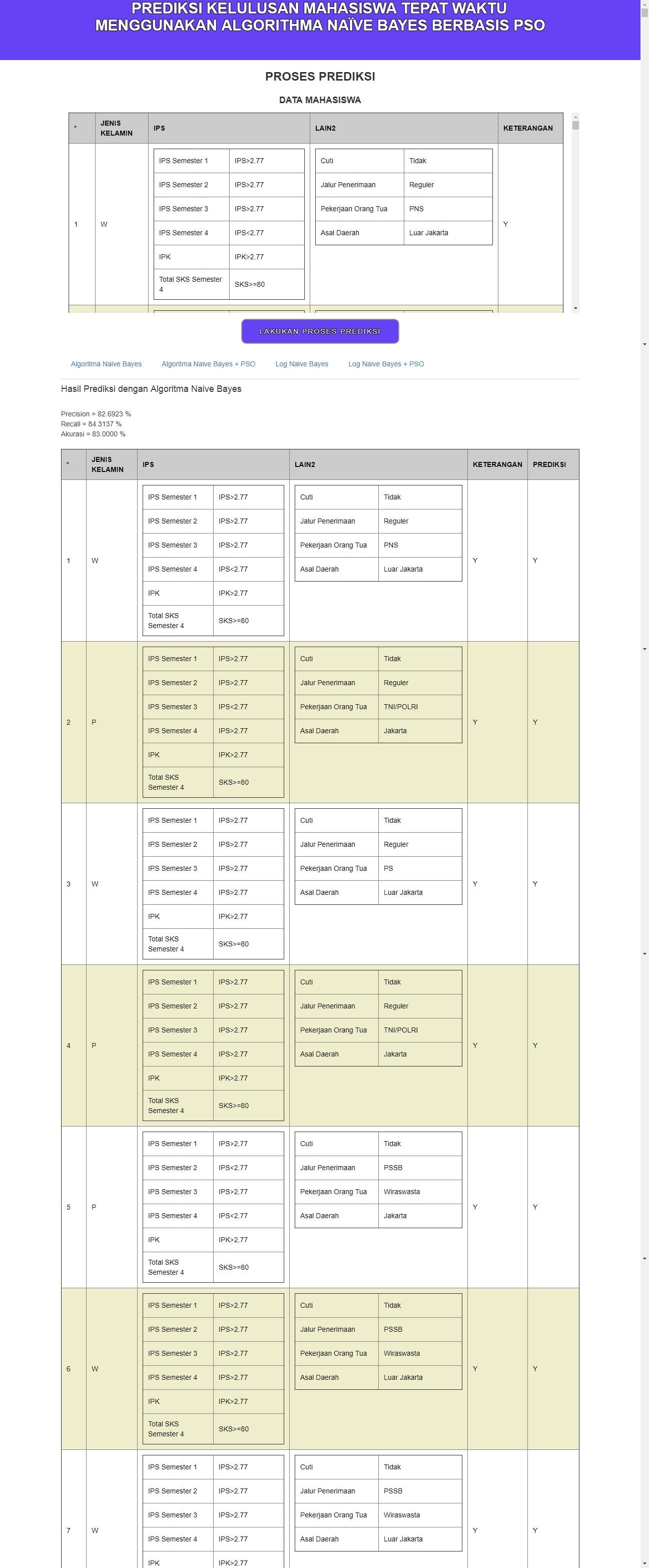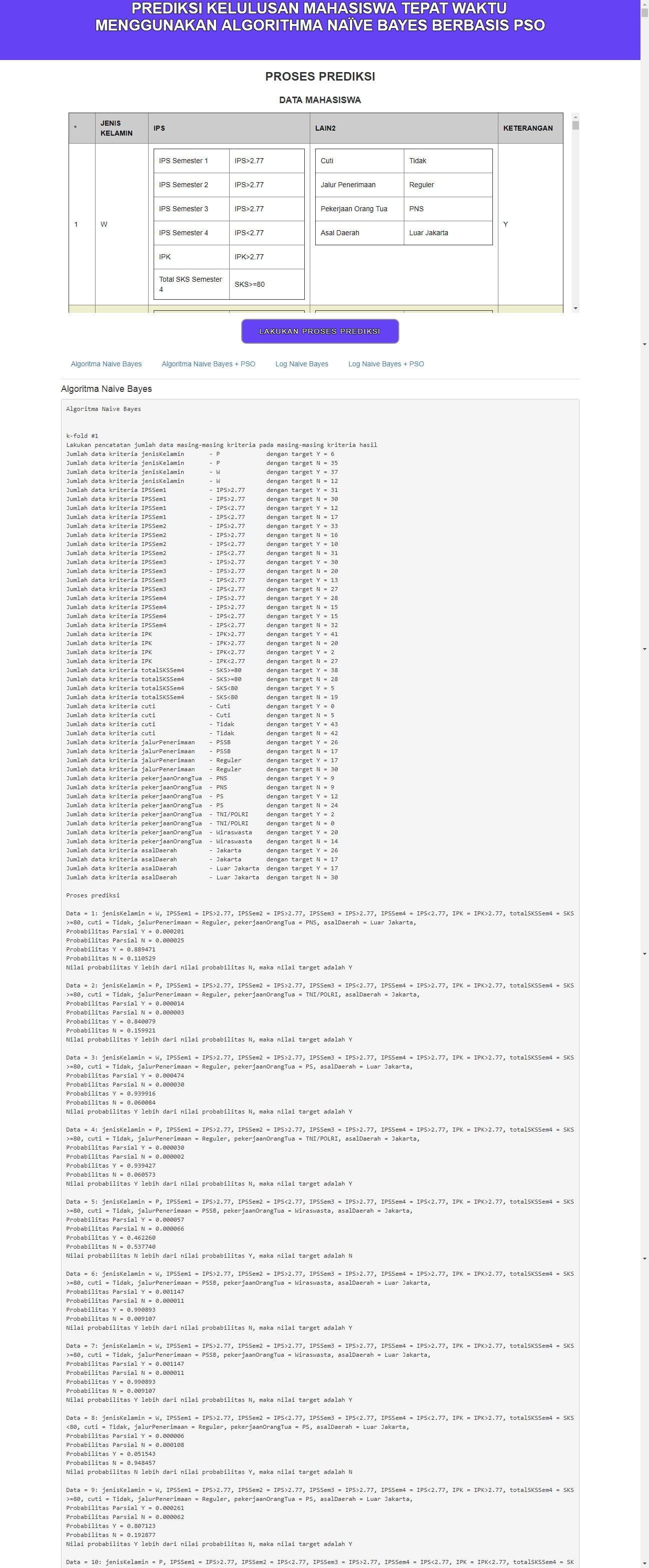 | Metode Tambahan | Naive Bayes dan PSO (Particle Swarm Optimization) |
